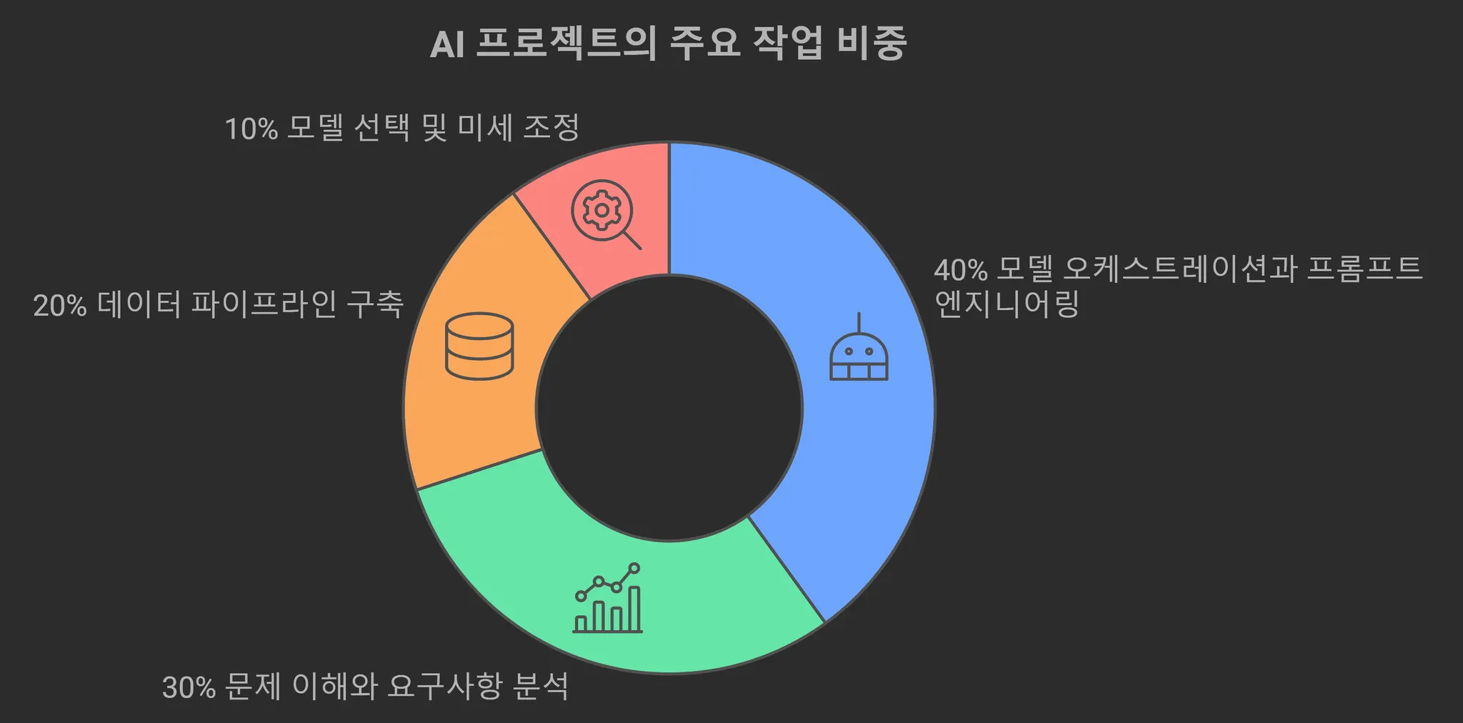 모델 조율(오케스트레이션)과 프롬프트 설계 작업 (40%)