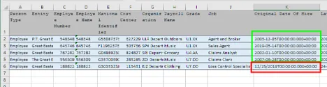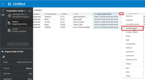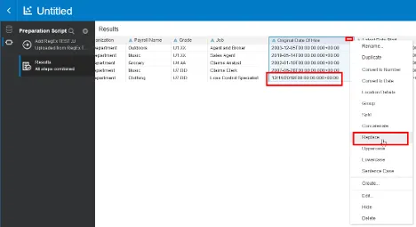 In the 'Prepare' section, select the 'Original Date Of Hire' column.