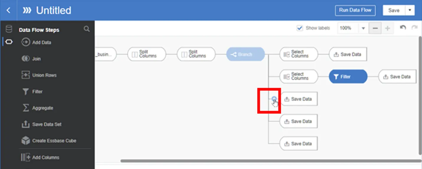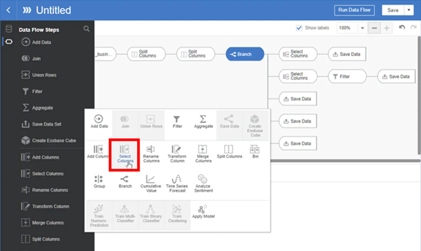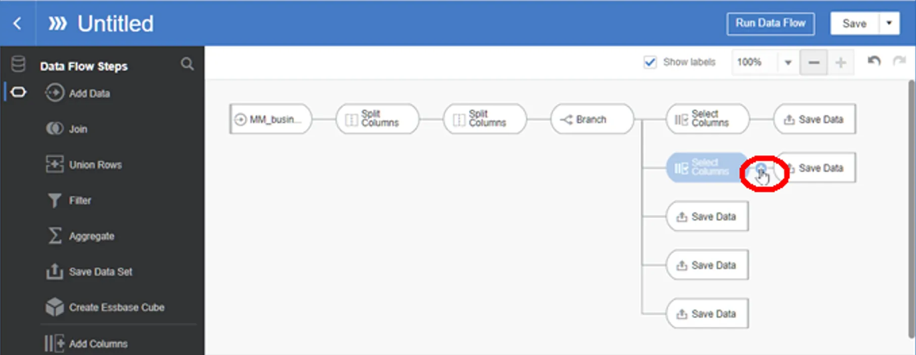Remove the rest of the splitted columns except “c1” to select only “c1” column for the 1st part of the branch.