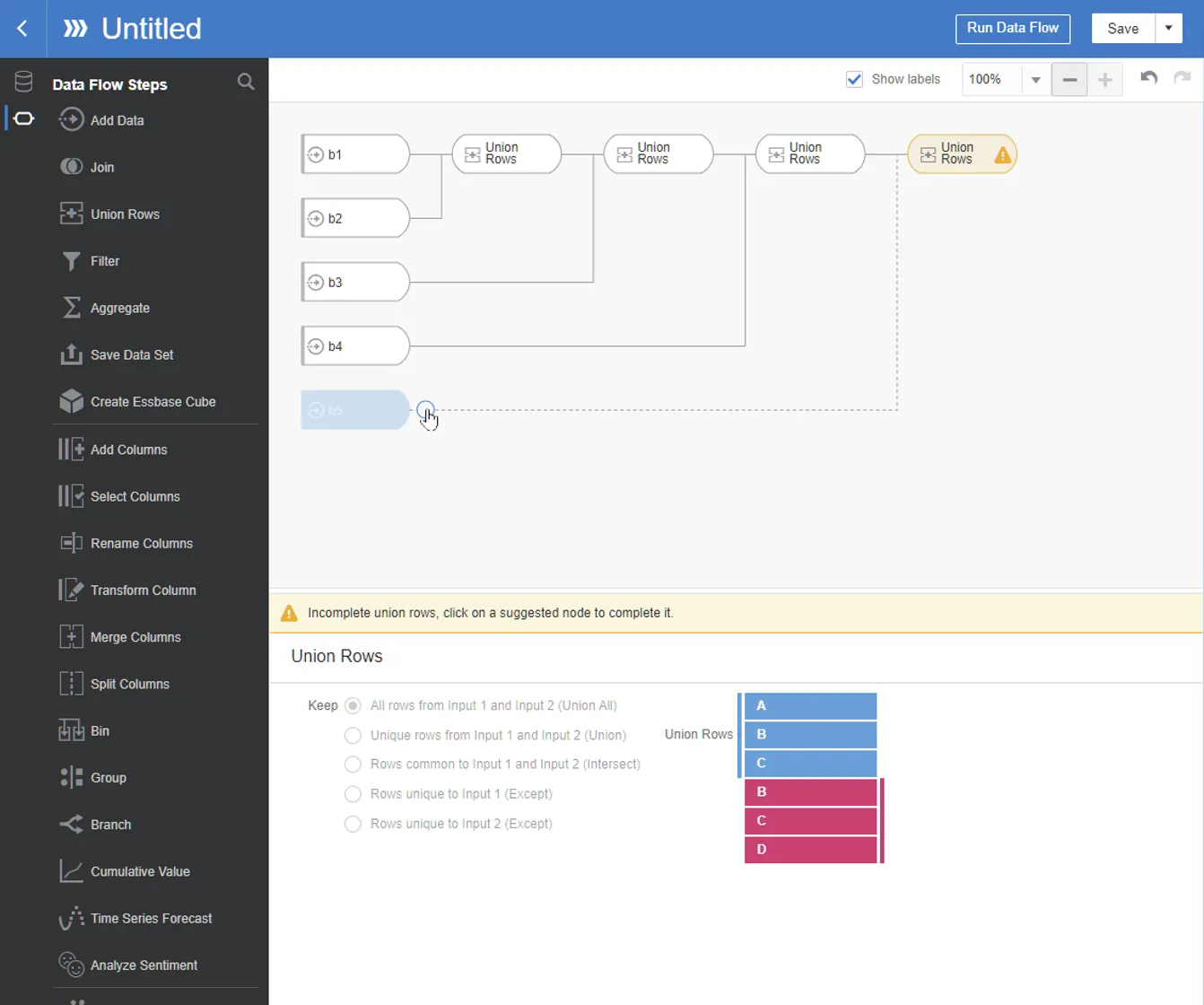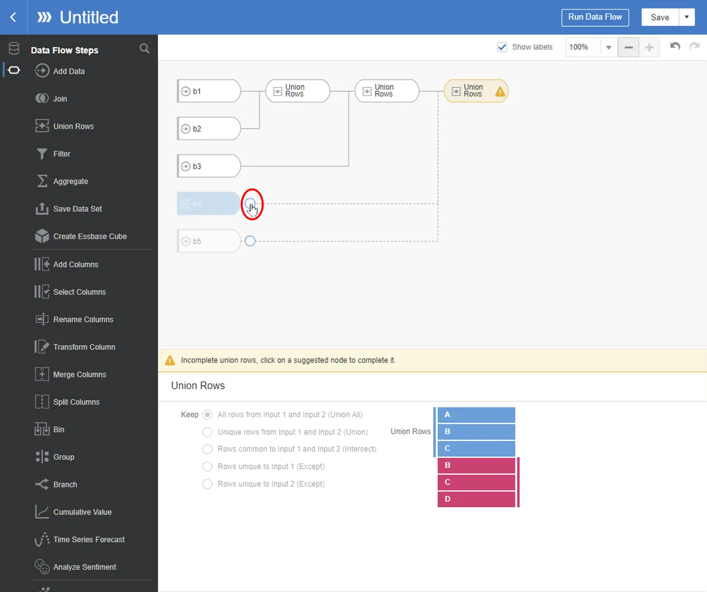 If the datasets are not joined automatically, go to the Prepare tab and join them manually: