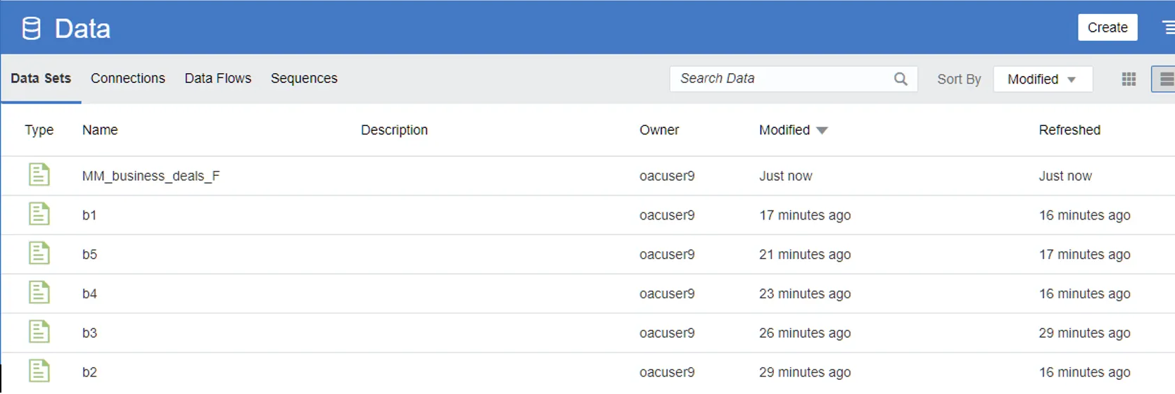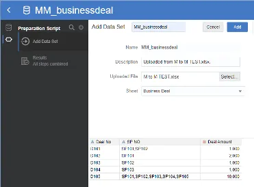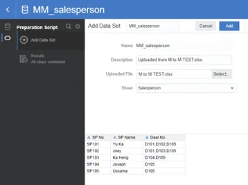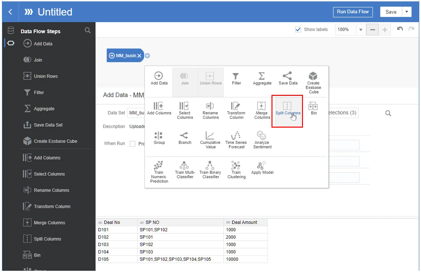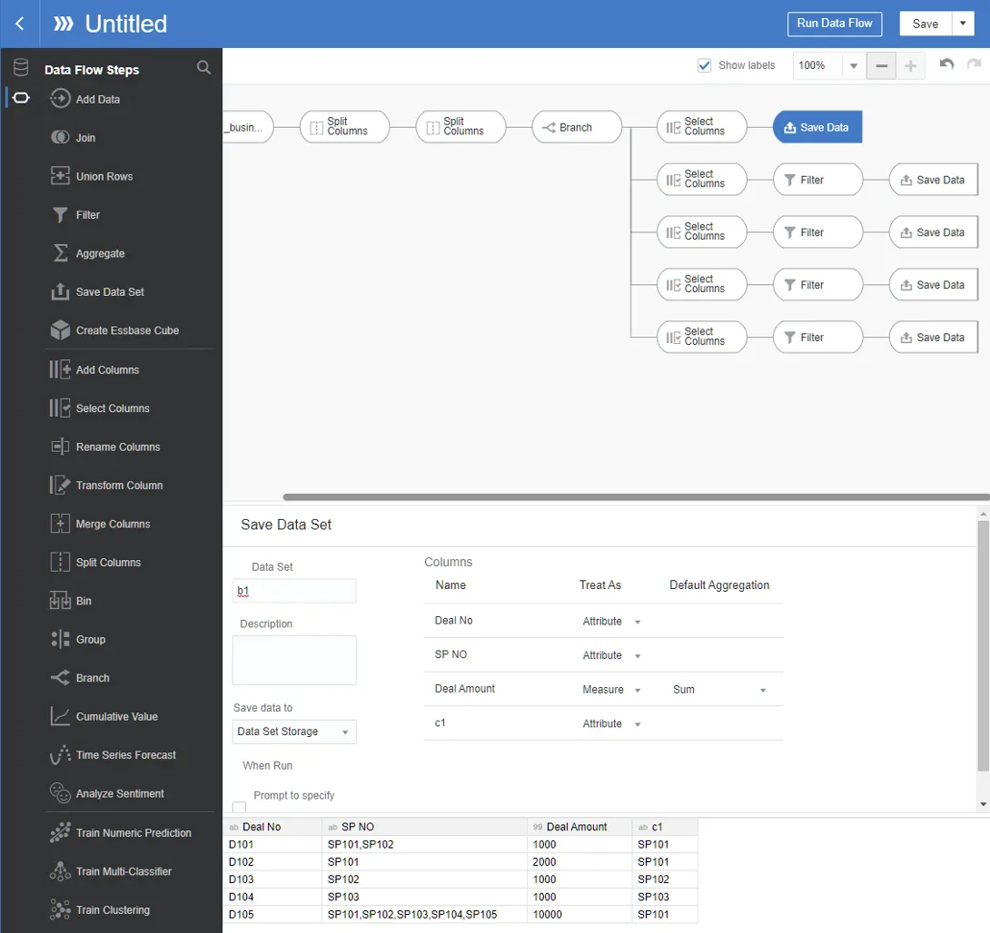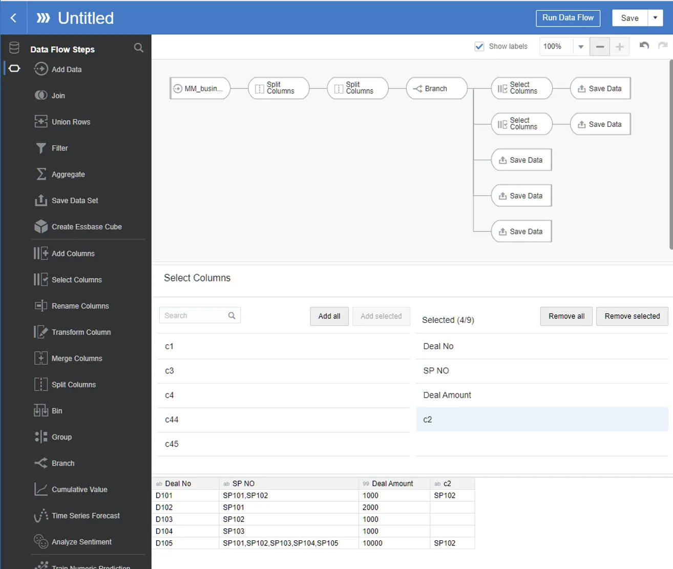 Now, we'll use OAC's Data Flow feature to create our bridge dataset. This process involves splitting the business deal dataset to create individual records for each salesperson-deal combination.