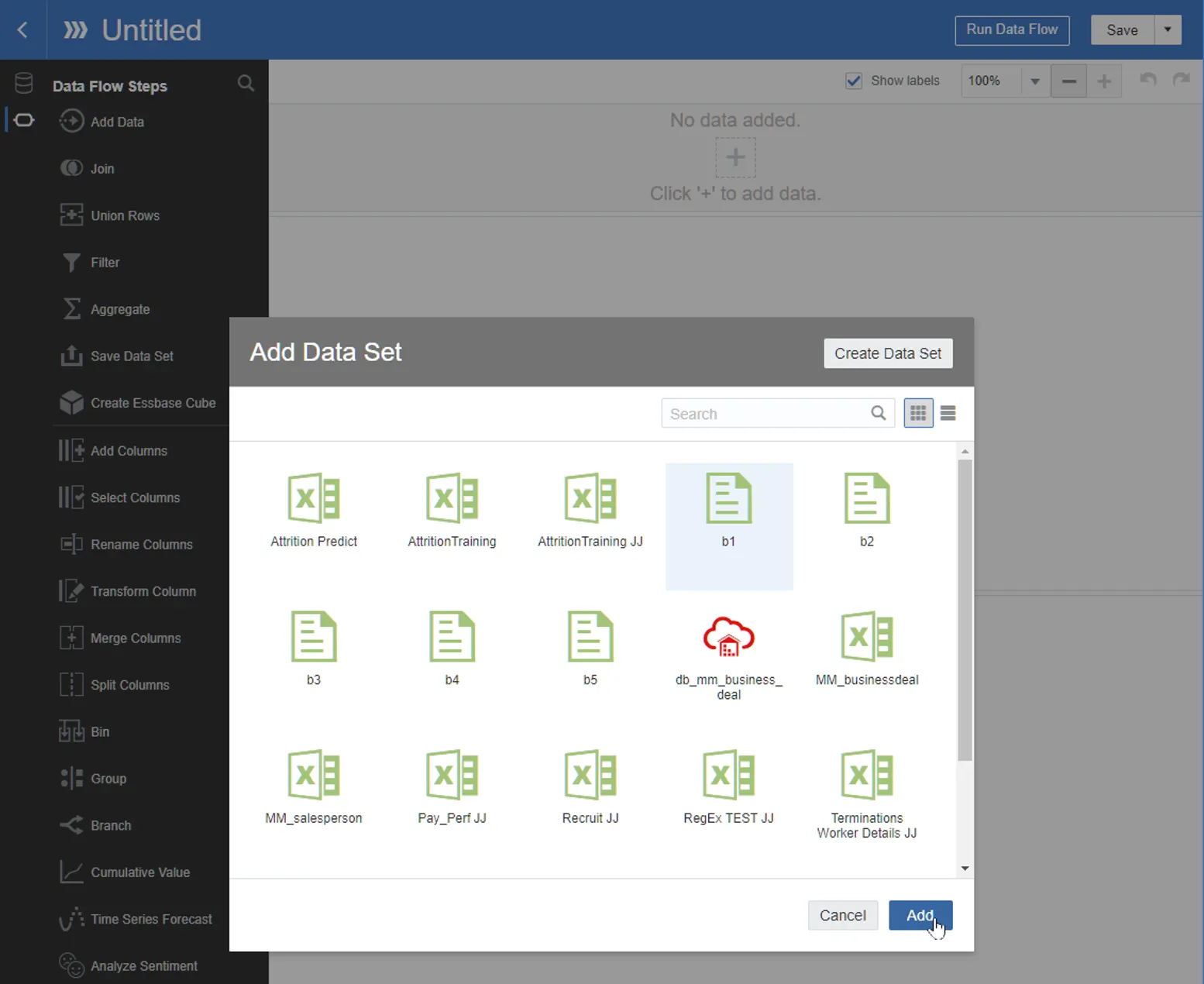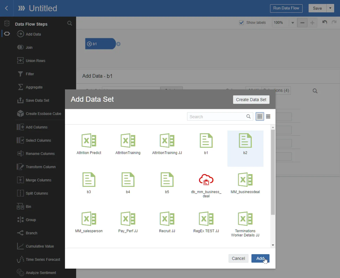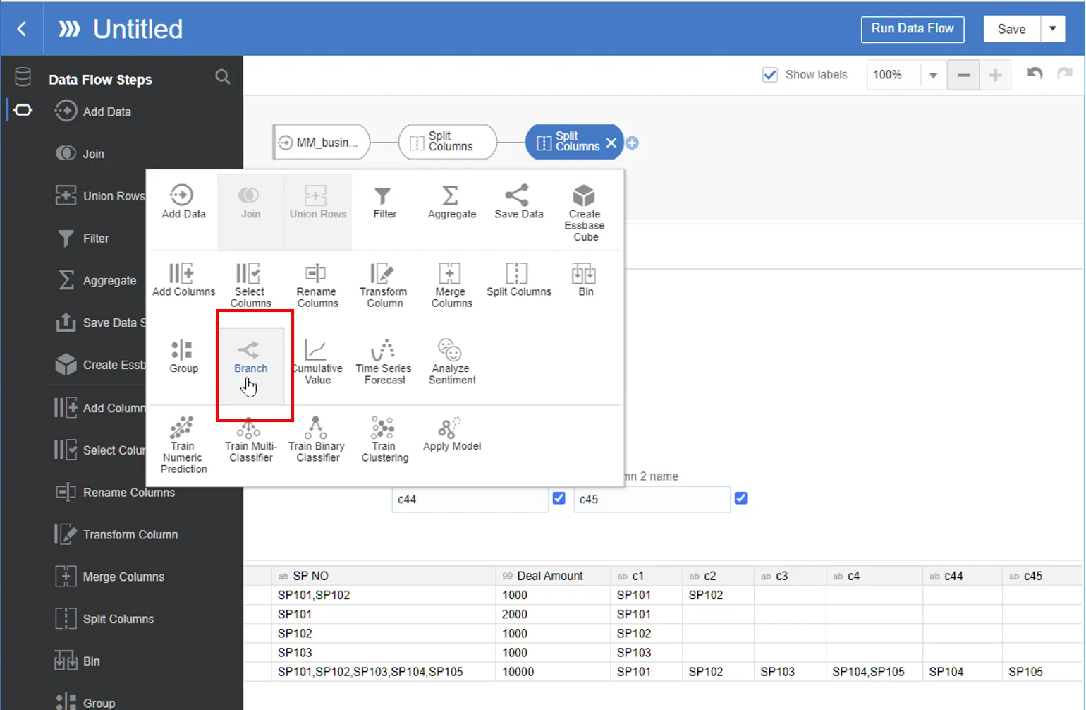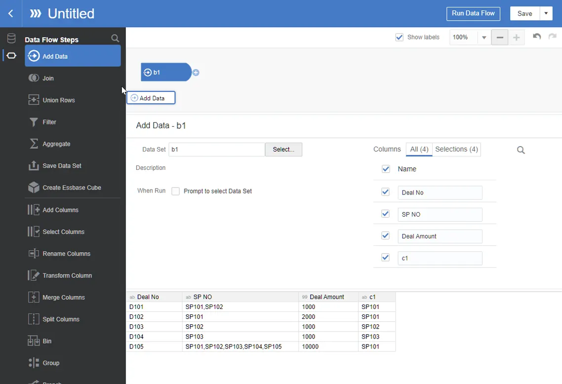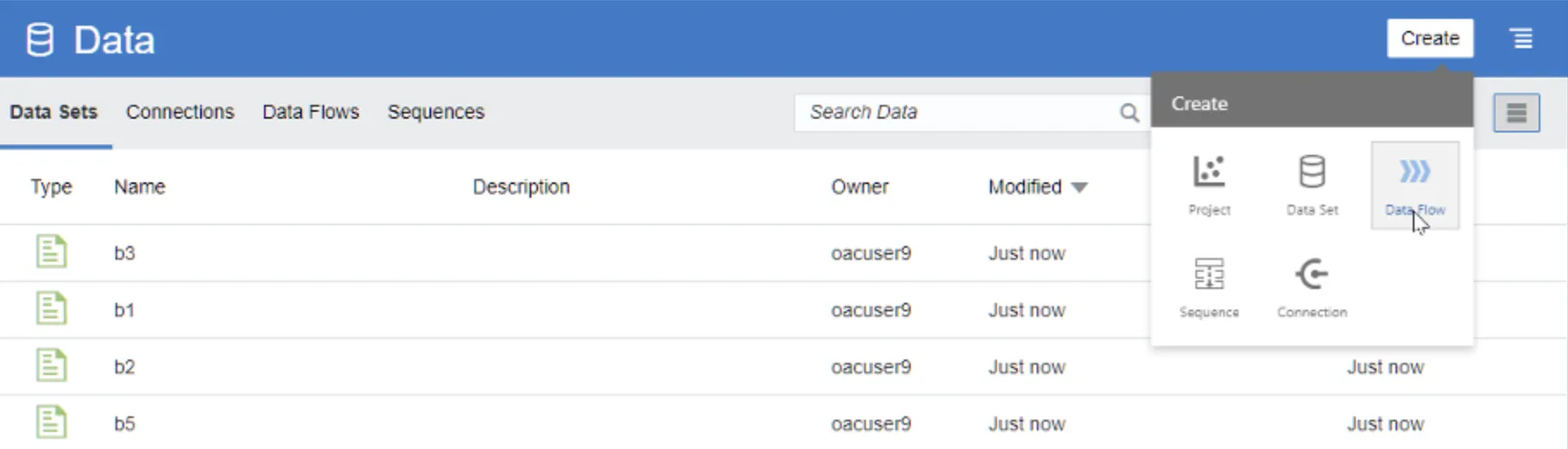 Now, we'll use OAC's Data Flow feature to create our bridge dataset. This process involves splitting the business deal dataset to create individual records for each salesperson-deal combination.