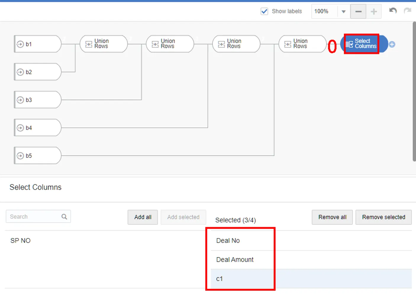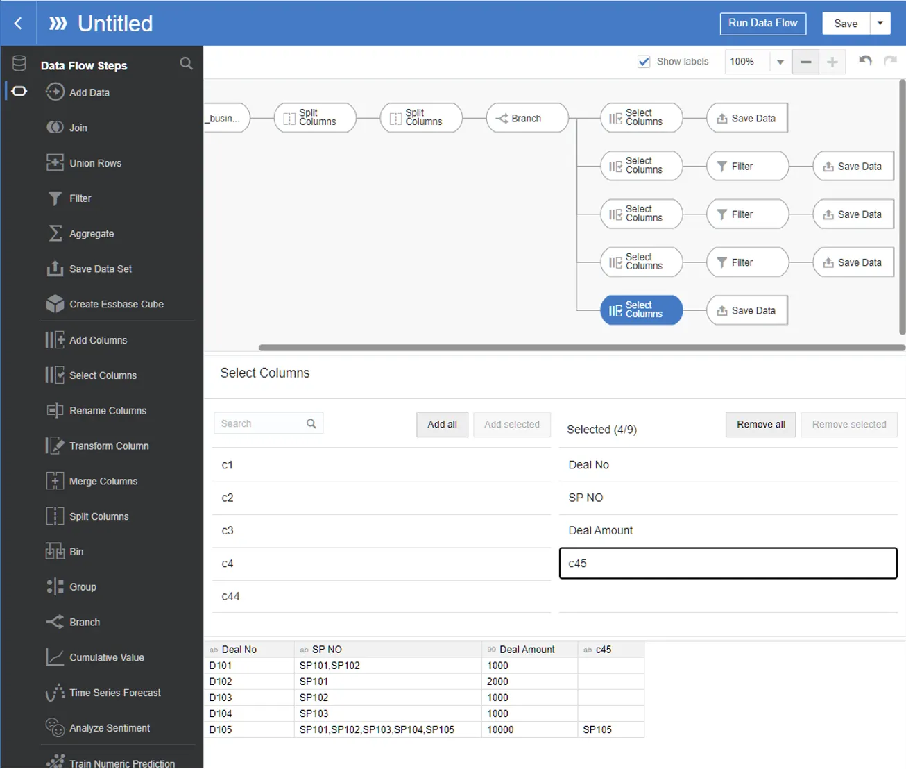 Add step —> select Select Columns —> select Deal No, Deal Amount and c1