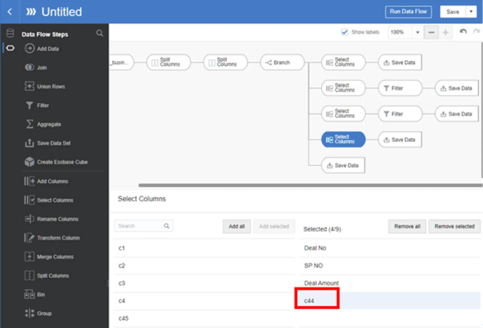 Add step to 4th branch —> select “Select Columns” —> Select c44 column only