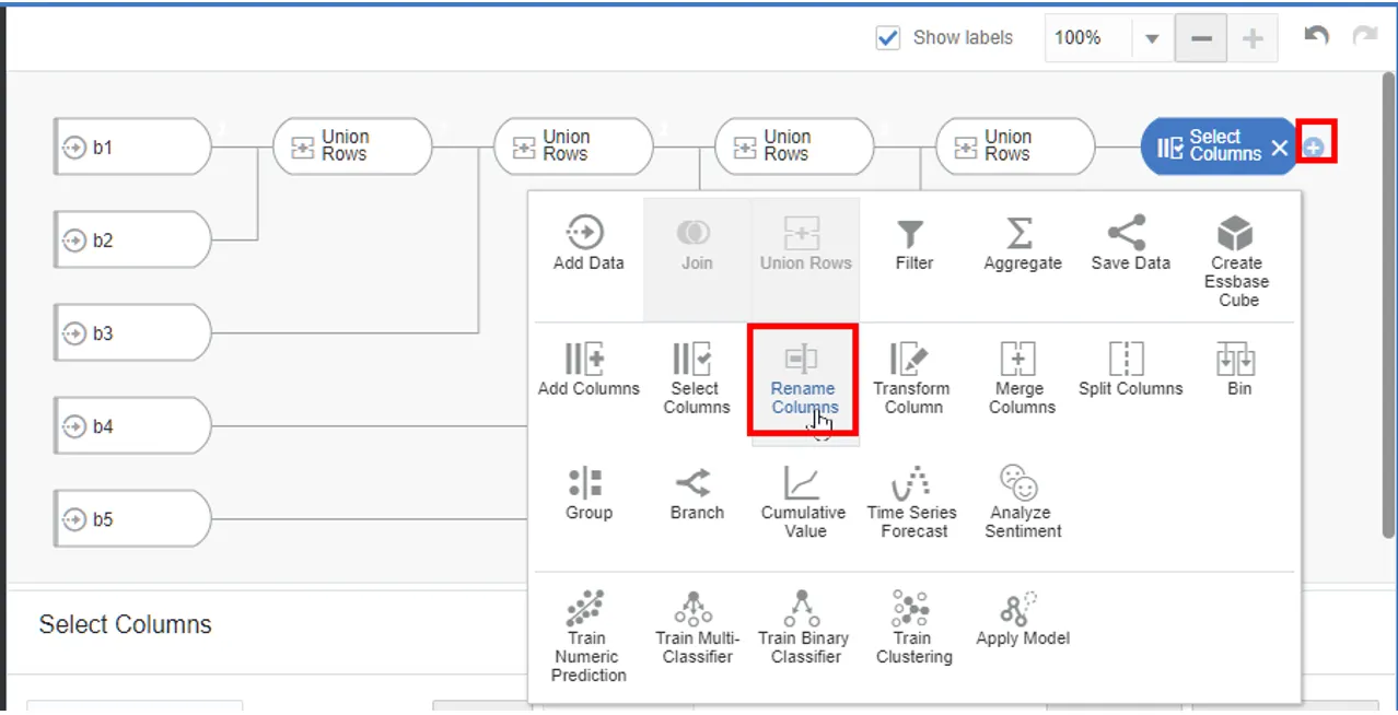 Add step to 5th branch —> select “Select Columns” —> Select c45