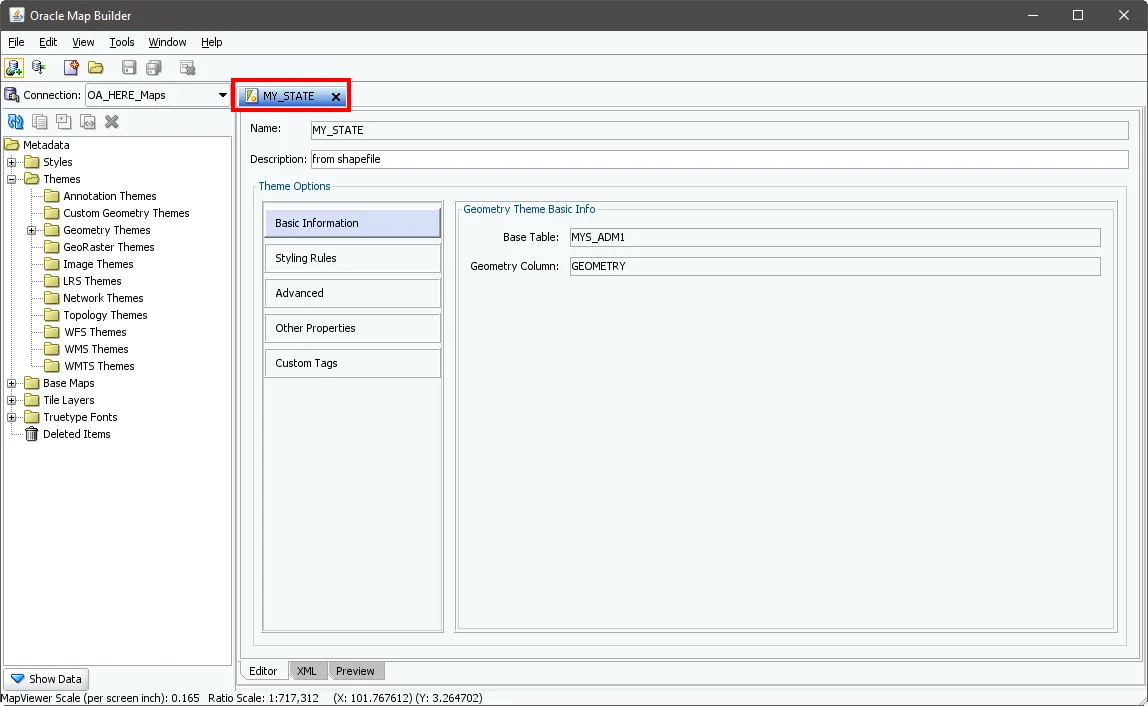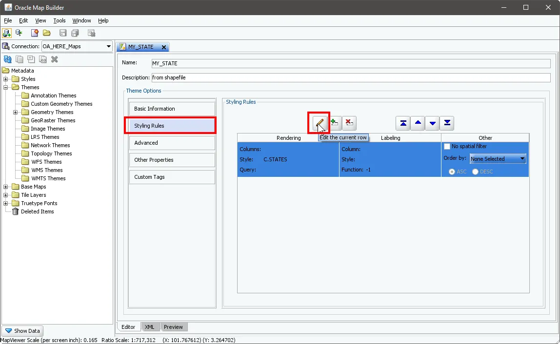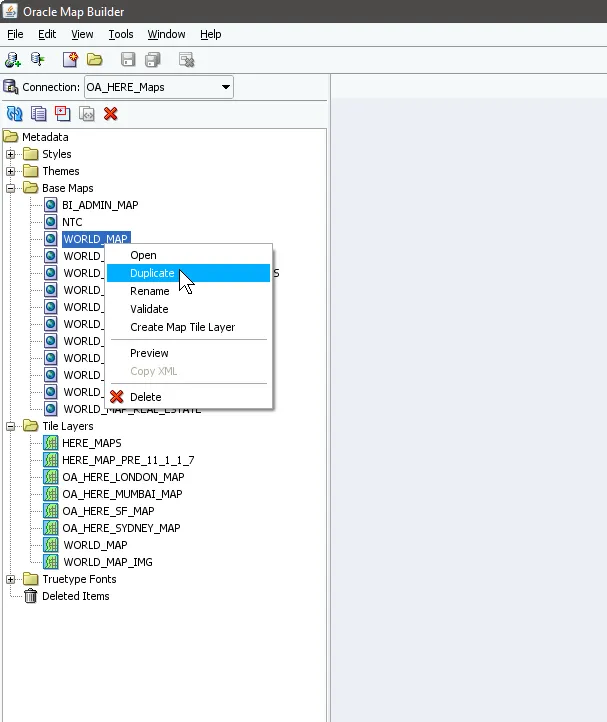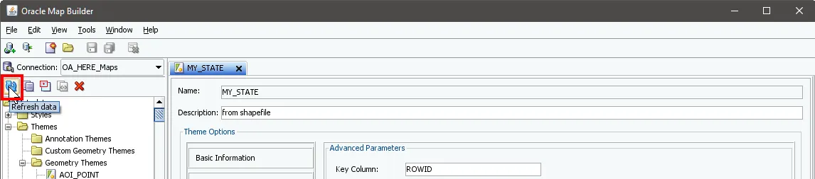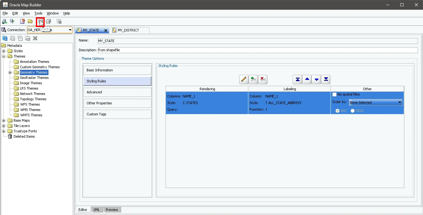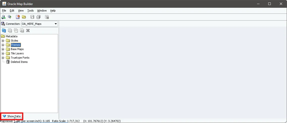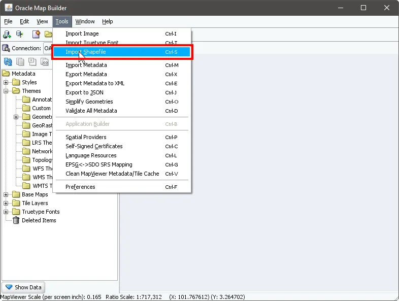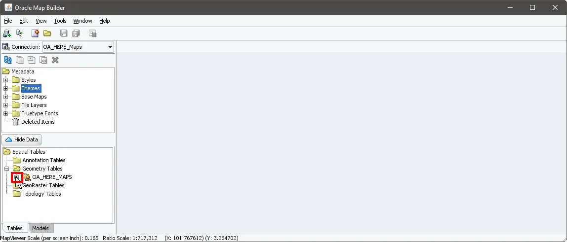 Start Oracle Mapbuilder and connect database by using connection as below: