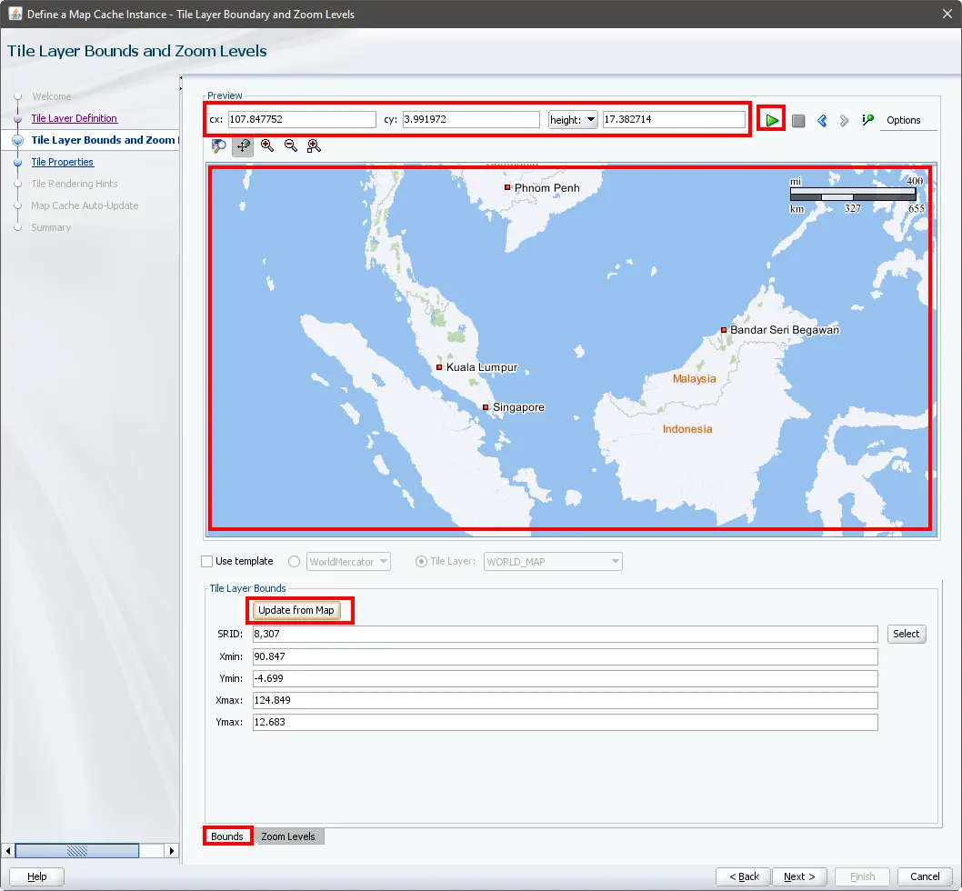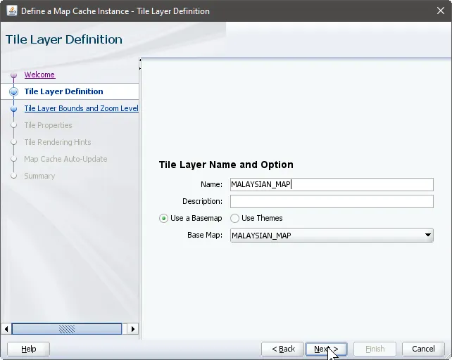 Moving to the configuration phase, the above image shows the Edit Background Map dialog where we: