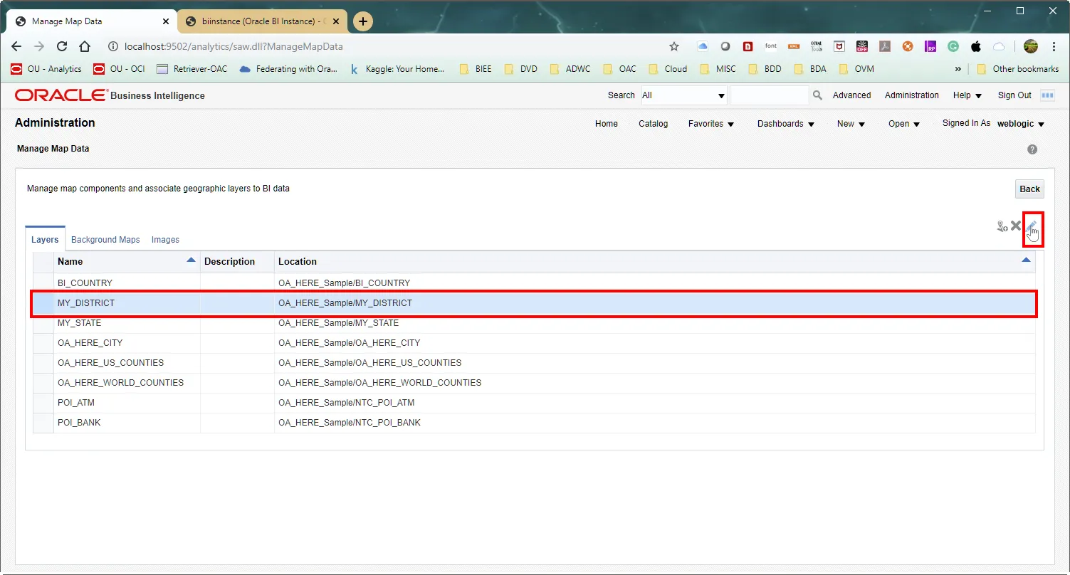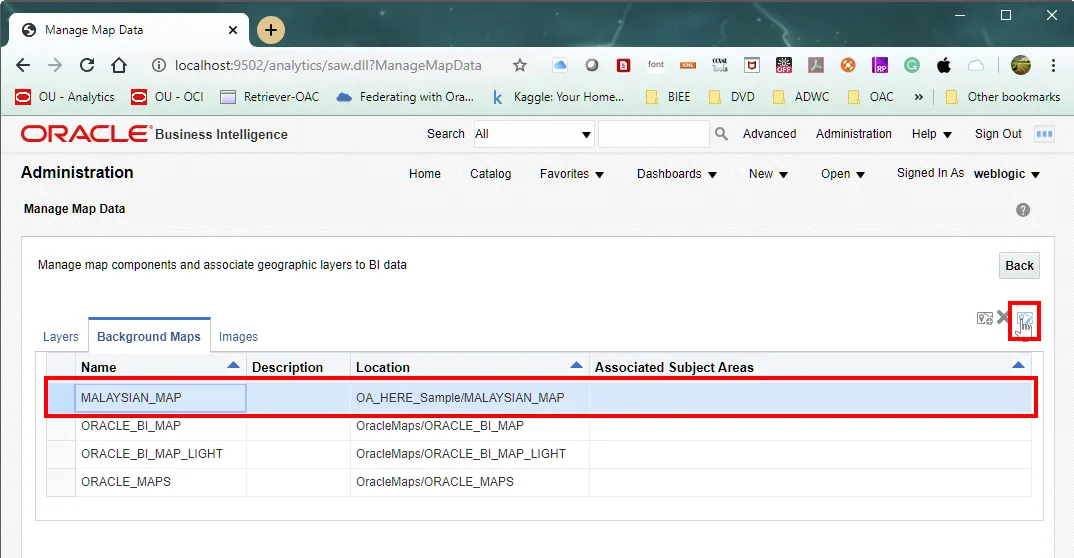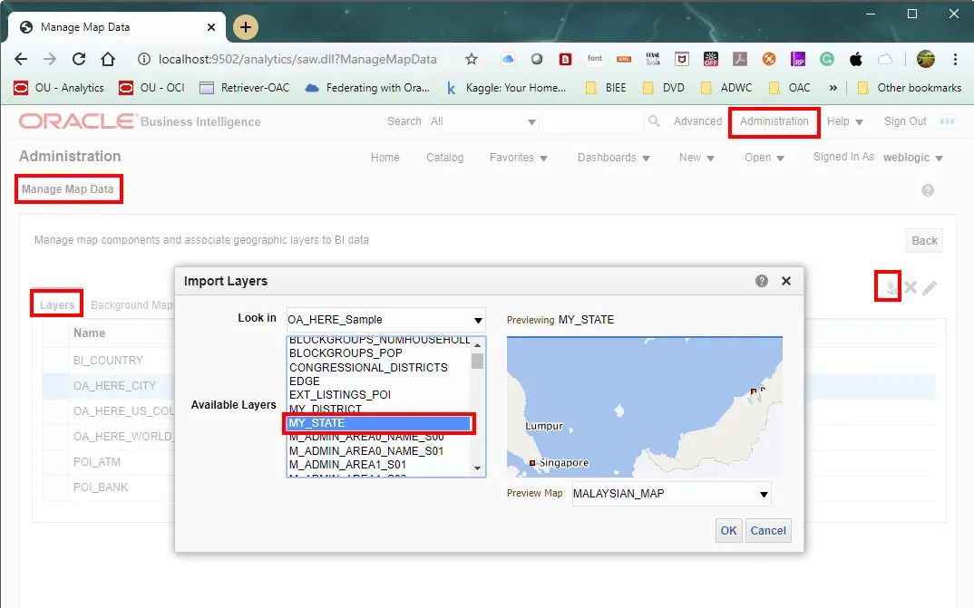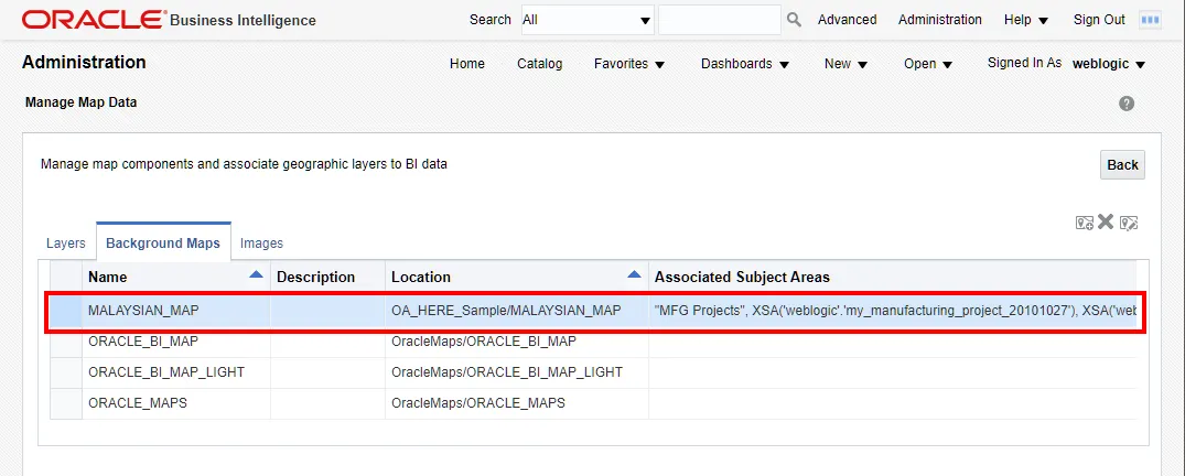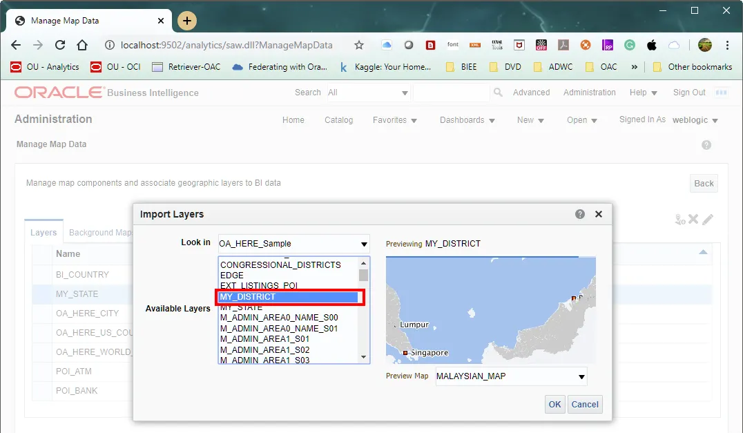 Before implementing custom Malaysian map layers, it's beneficial to understand the basic setup using Oracle's predefined spatial datasets. This approach provides a solid foundation for understanding OBIEE's mapping functionality.