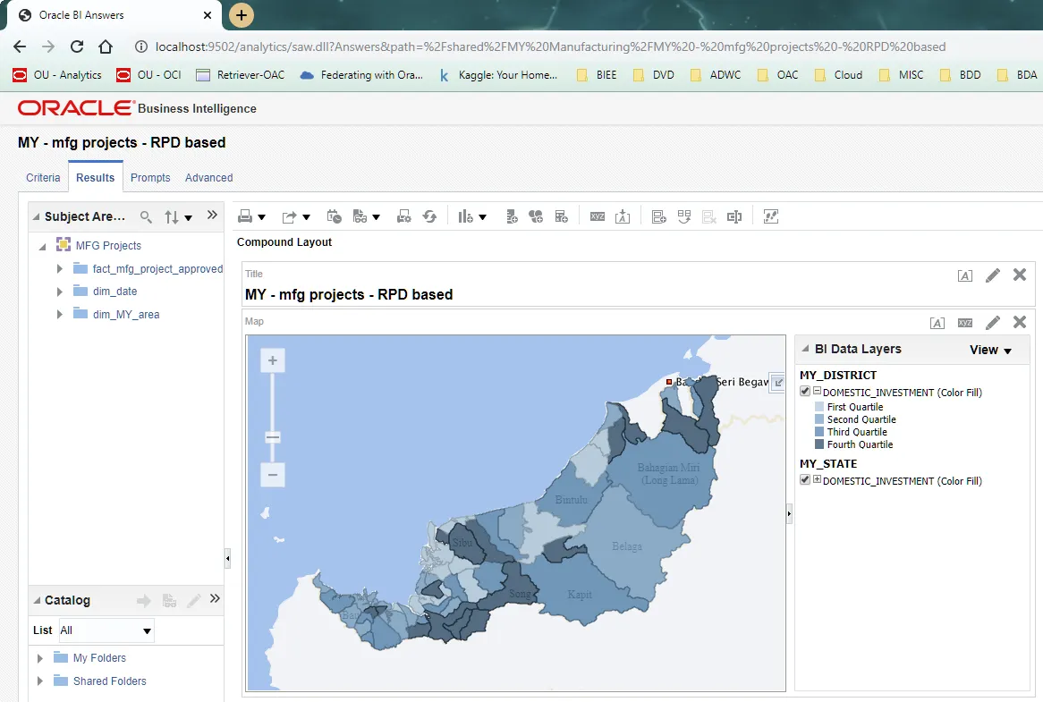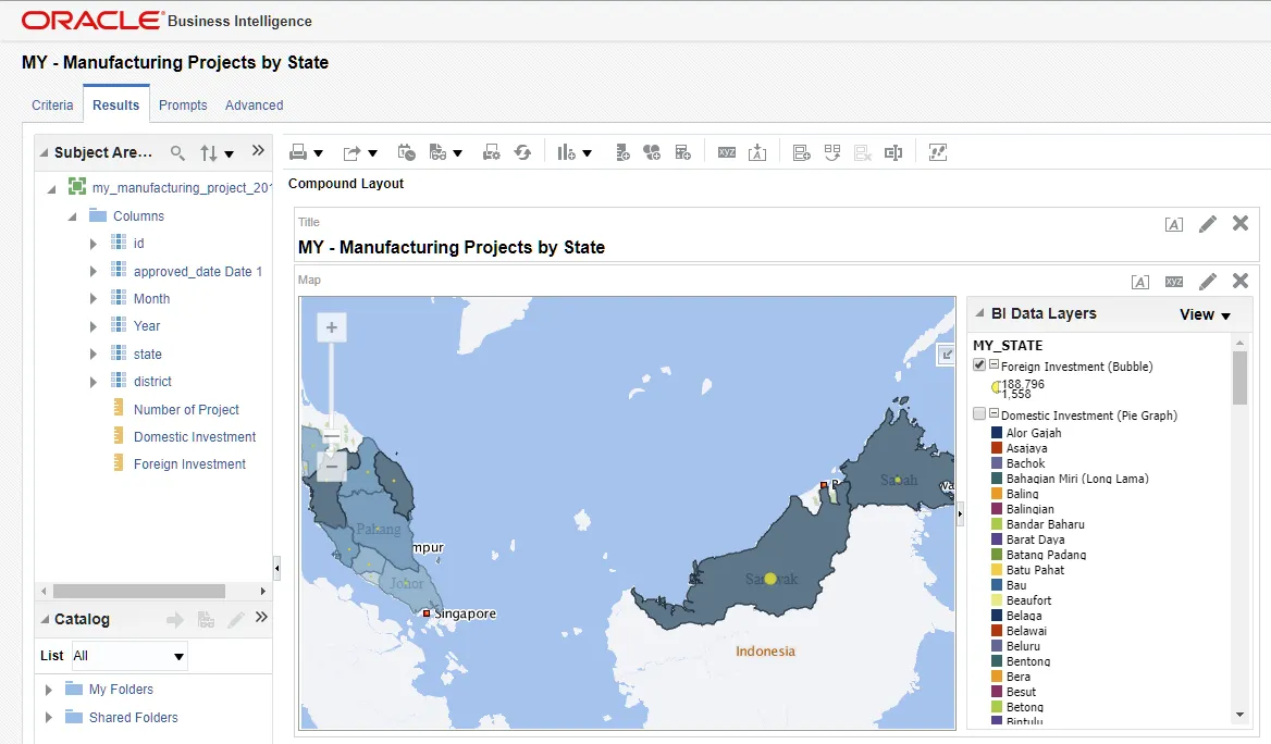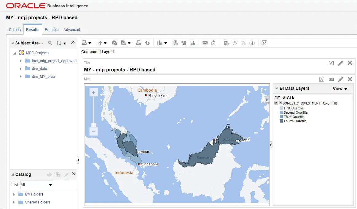 Oracle Business Intelligence Enterprise Edition (OBIEE) provides powerful capabilities for geospatial visualization. This comprehensive guide explores two implementation approaches: using predefined spatial datasets and implementing custom Malaysian map layers. We'll cover both paths to give you a complete understanding of the implementation options.
