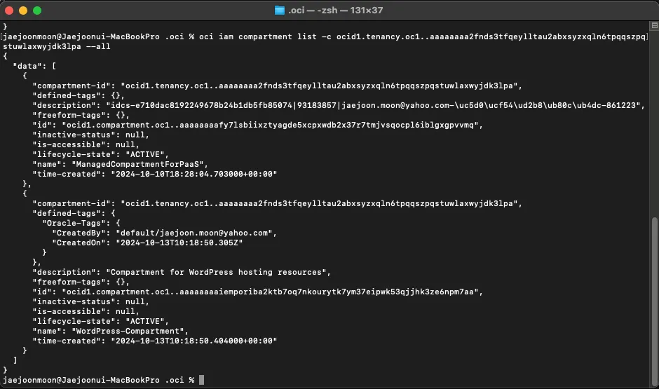 /Users/jaejoonmoon/.oci 디렉토리에 다음 JSON 파일들을 생성합니다: