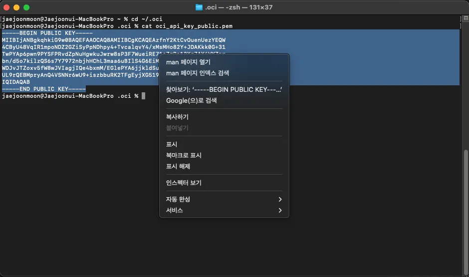 public key (기본: ~/.oci/oci_api_key_public.pem)