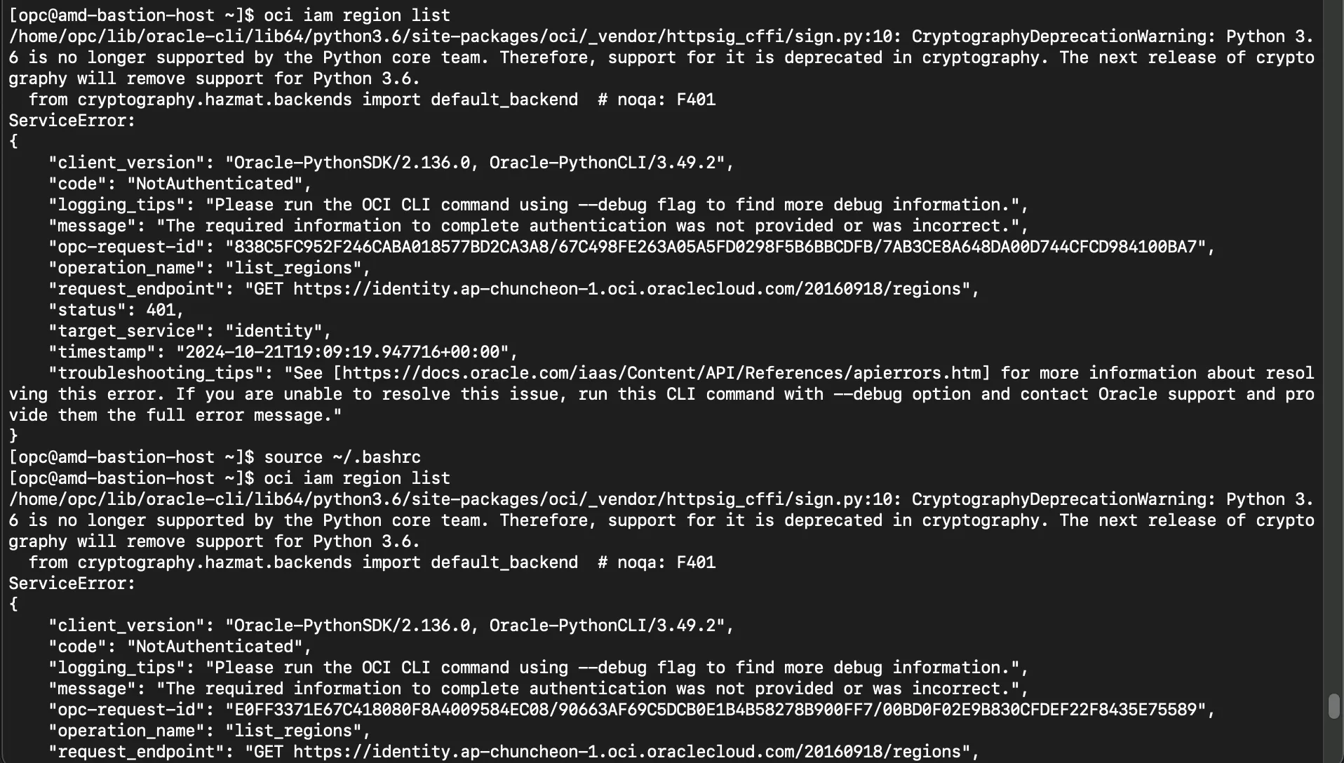 Bastion Host에 접속한 후, 다음 단계를 따라 OCI CLI를 설치합니다: