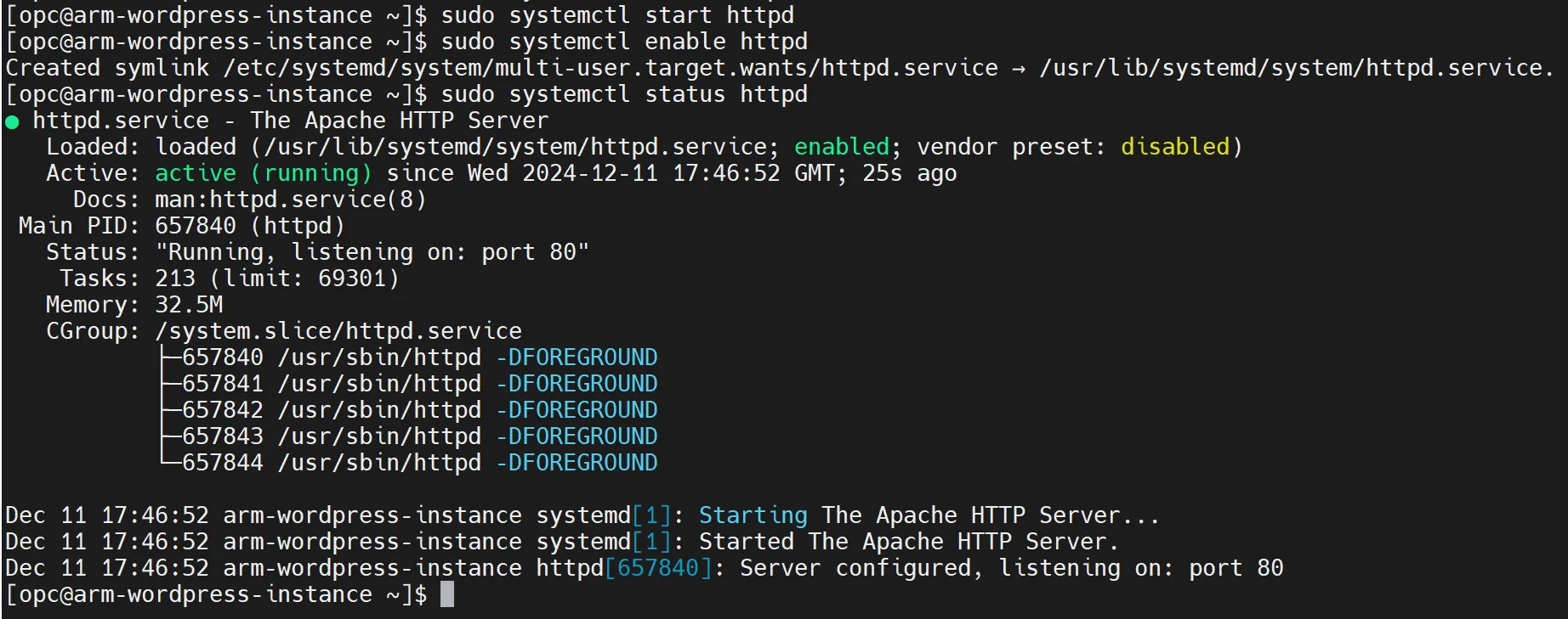 ssh -i ~/.ssh/oci_wordpress opc@[인스턴스_공용_IP]
