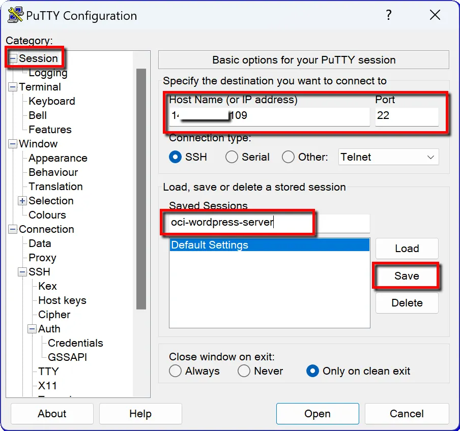 호스트 이름에 opc@[인스턴스_공용_IP] 입력