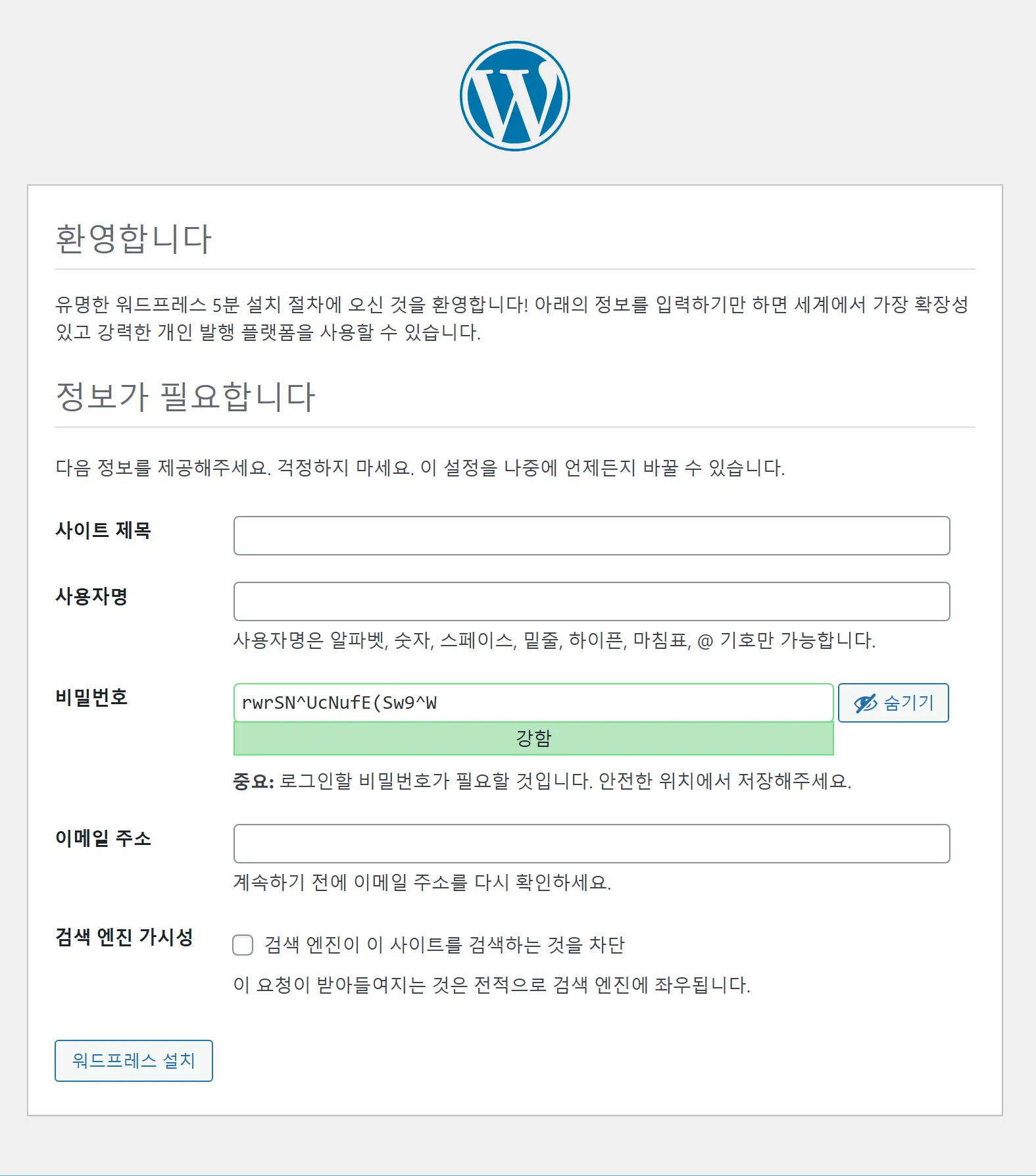 이렇게 하고 다시 실행하면 정상적으로 wordpress가 설치 될 거에요!