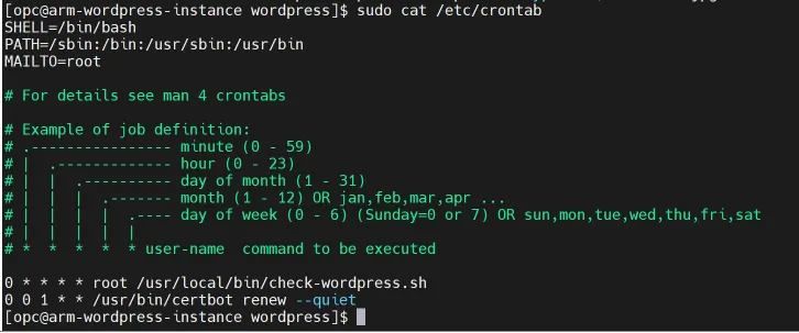 echo "0 0 1 * * /usr/bin/certbot renew --quiet" | sudo tee -a /etc/crontab