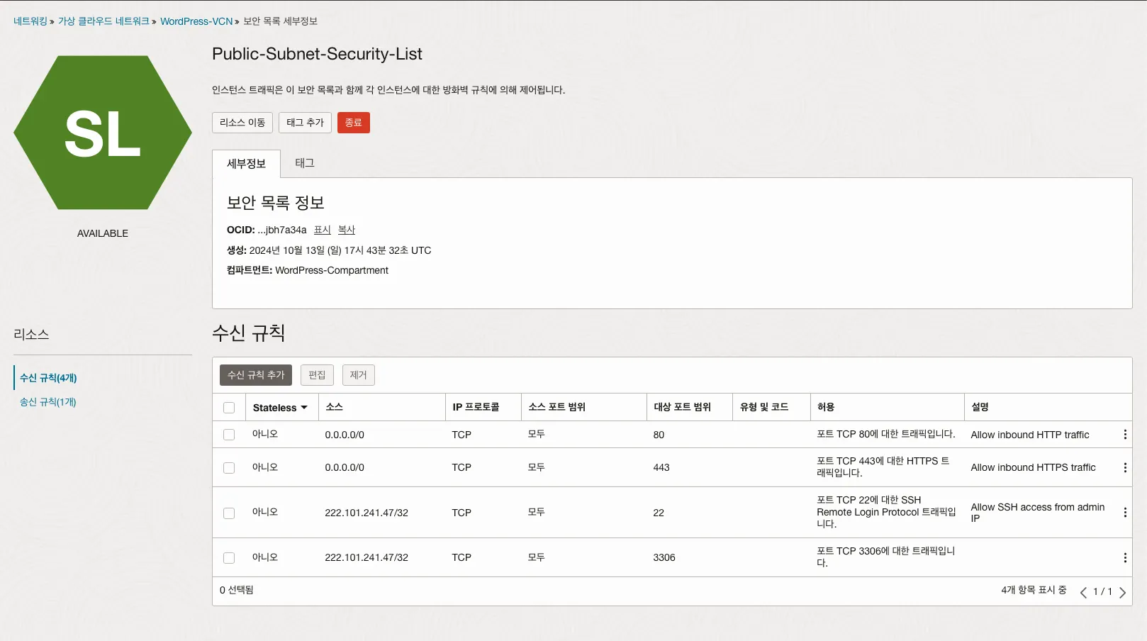 OCI Security List 설정 (OCI 콘솔에서 확인)